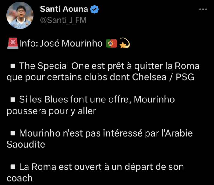 法媒表示,穆帅确实准备好了离开罗马,不过他若离开只会去某些欧洲顶级俱乐部,包括切尔西和巴黎圣日耳曼。