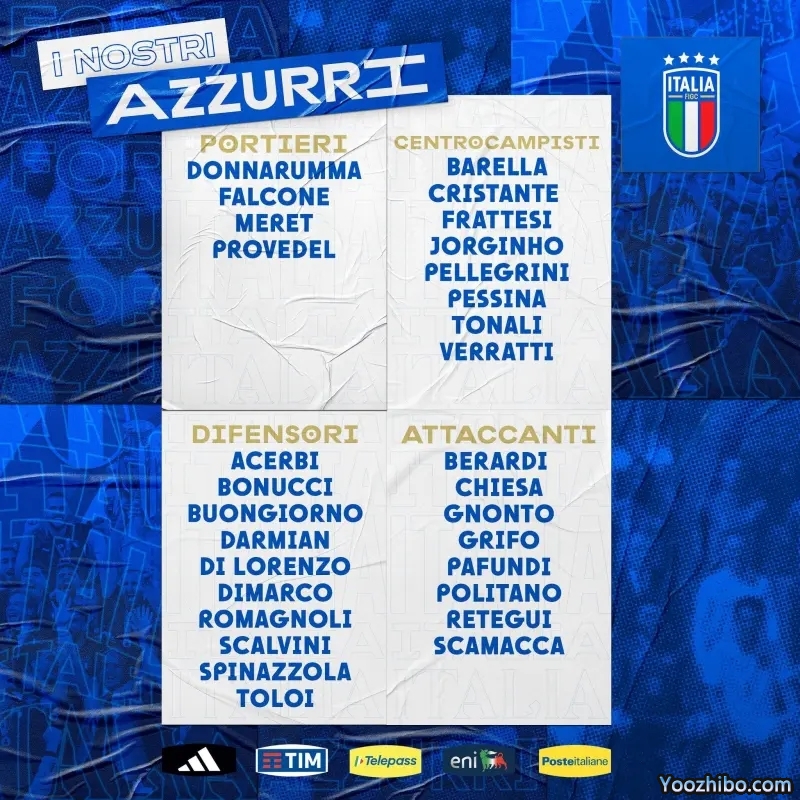 来源:24直播网03-18 13:4424直播网03月18日讯 意大利公布了欧预赛对阵英格兰、马耳他的30人名单,具体如下。