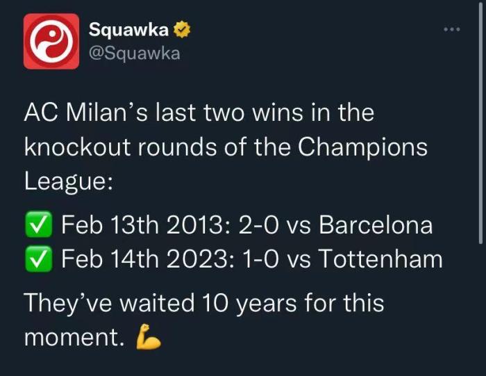 10年的等待!米兰再度在欧冠淘汰赛赢球
