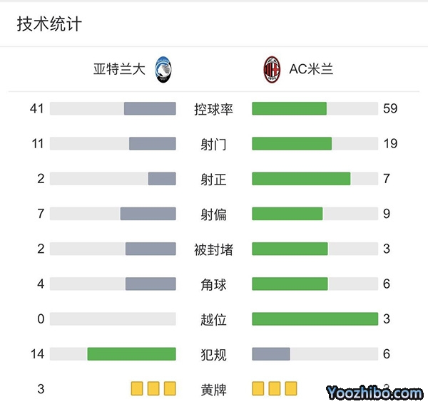第68分钟,AC米兰角球机会,本纳塞尔禁区左侧横向盘带后爆射,这球击中立柱弹进门内,AC米兰1-1亚特兰大。