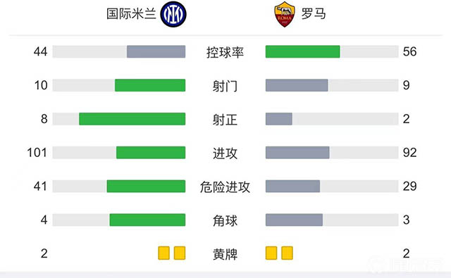 第29分钟,国米在中场连续撞墙配合后由恰尔汗奥卢送出直塞,邓弗里斯插上获得单刀机会将球打进,国际米兰1-0罗马。