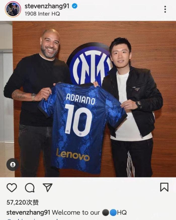 24直播网04月22日讯 北京时间今天,国米主席张康阳今天在社交媒体上晒出了与国米名宿阿德里亚诺的合照。