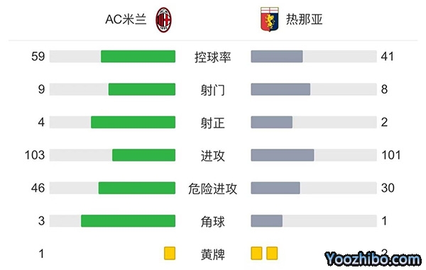 全场比赛结束,AC米兰主场2-0战胜热那亚。