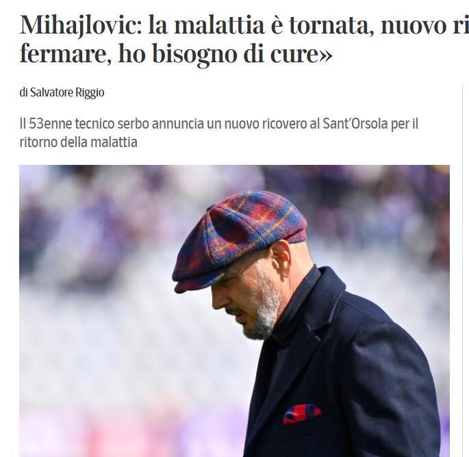 来源:24直播网03-27 17:0524直播网03月27日讯 消息,博洛尼亚主帅米哈伊洛维奇宣布白血病复发,他将再次住院治疗。