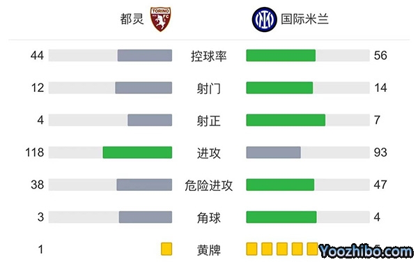 全场比赛结束,最终国米1-1战平都灵,距离榜首的AC米兰差4分。