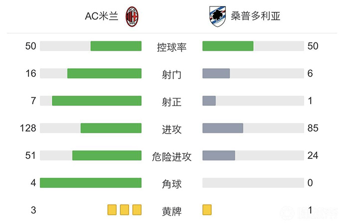 来源:24直播网02-13 21:46 24直播网讯:北京时间2月13日19:30,意甲联赛第25轮的一场较量,AC米兰坐镇主场,迎战桑普多利亚。上半场,迈尼昂长传助攻拉斐尔-莱奥破门,AC米兰暂时1-0桑普多利亚;下半场,吉鲁多次造险,双方均未完成进球。最终,AC米兰主场1-0小胜桑普多利亚,多赛一场的情况下暂时超越国际米兰,升至积分榜榜首。