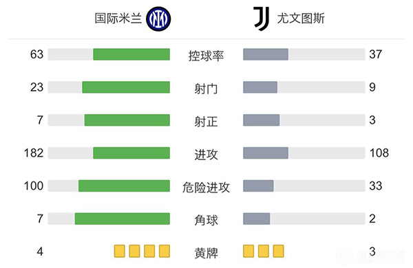 全场比赛结束,国际米兰2-1尤文图斯。