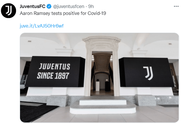 尤文图斯方面证实,拉姆塞今天新冠检测呈阳性,这位威尔士国脚中场已被隔离。