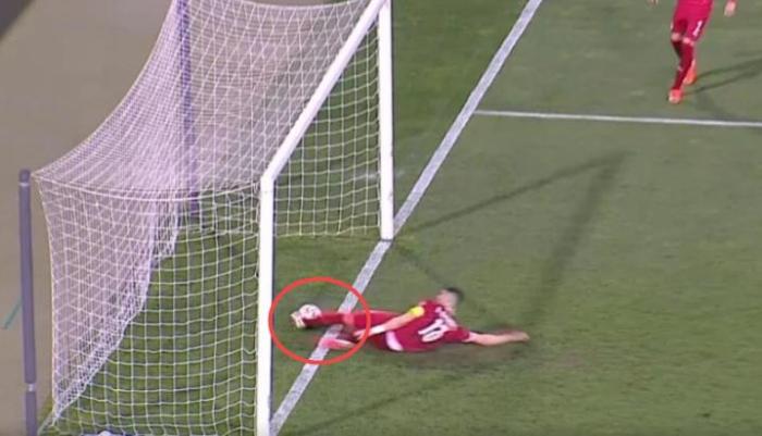绝杀球,美妙的绝杀球,可是C罗还没有来得及庆祝,裁判吹起了哨子,裁判员认为进球无效,依据很简单,裁判认为塞尔维亚球员救球的时候,球并没有过门线。