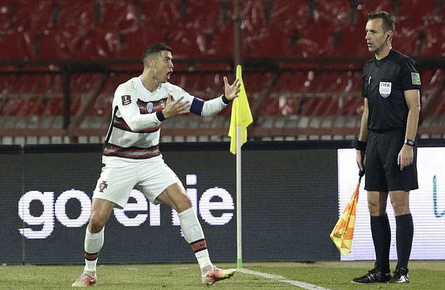 这样的判罚显然让C罗无法接受,因为欧洲区世预赛并没有引进VAR,所以C罗只能找到主裁判和距离最近的边线裁判投诉,可惜的是裁判并没有理会C罗,葡萄牙只能接受平局的命运。对于这样的判罚,显然C罗非常的不满意,愤怒的C罗脱下了队长袖标,狠狠地砸在地上发泄自己的情绪。