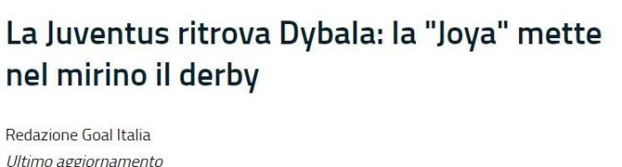 该媒体表示,迪巴拉的复出能够给陷入困境的尤文锋线带来帮助,自从1月10日与萨索洛的比赛中膝盖受伤后,迪巴拉就一直在恢复,现在他的左膝副韧带已经不再感到疼痛。