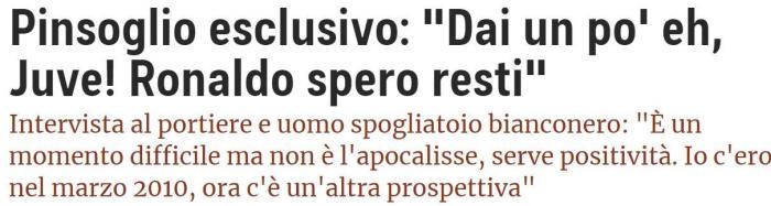 来源:24直播网03-27 19:5524直播网讯近日,尤文门将平索利奥在接受《都灵体育报》采访时表示,C罗在训练时任意球很准,比赛时可能是缺少运气。
