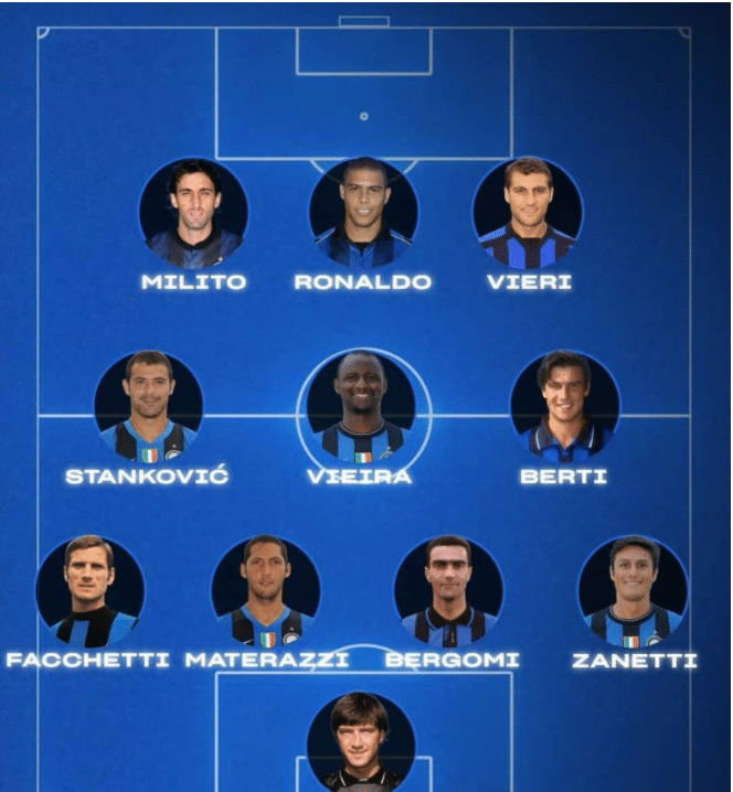 国米大将评选国米历史最佳阵容:大罗、维埃里和米利托搭档!