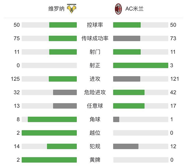 全场比赛结束,米兰客场2-0击败维罗纳。