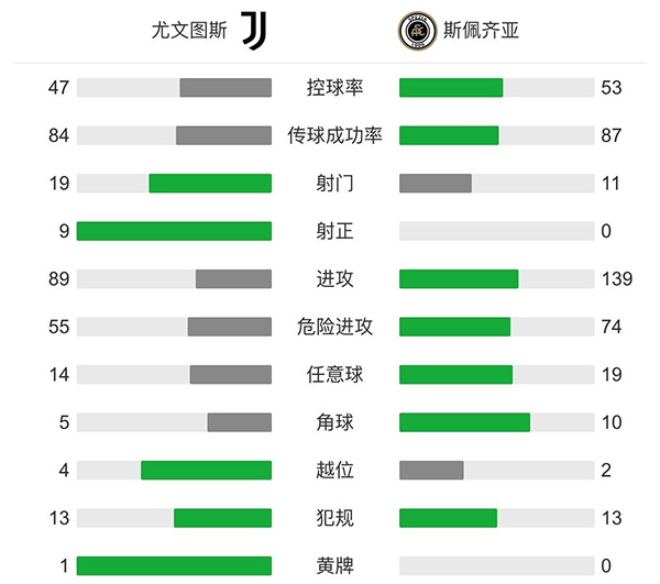最终全场比赛结束,尤文图斯主场3-0完胜斯佩齐亚。