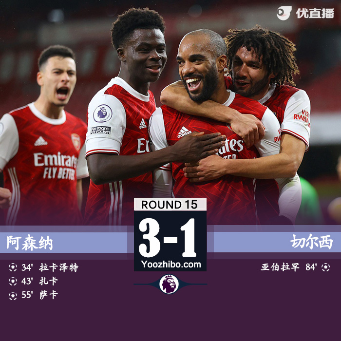 24直播网12月27日讯 北京时间12月27日凌晨1点30分,2020-21赛季英超第15轮在酋长球场展开角逐,阿森纳坐镇主场迎战切尔西。上半场拉卡泽特点射打破僵局,扎卡任意球建功,下半场萨卡精彩吊射破门,亚伯拉罕扳回一城,若日尼奥失点。最终阿森纳主场3-1战胜切尔西,阿森纳终结联赛7轮不胜,切尔西联赛客场三连败。积分榜方面,阿森纳积17分位居第14,切尔西积25分名列第6。