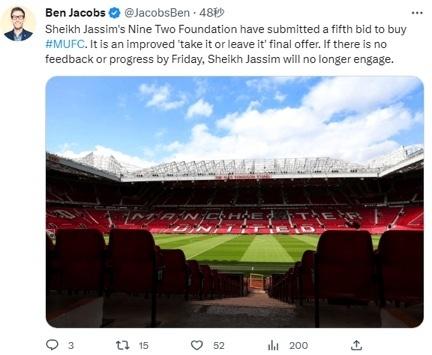 从今年2月起,贾西姆已经先后5次竞标,卡塔尔希望能获得曼联的完全控制权,包括在基础设施和招募方面的投资。但自从自4月28日最终投标截止日期以来,格雷泽家族尚未选定优先投标人。