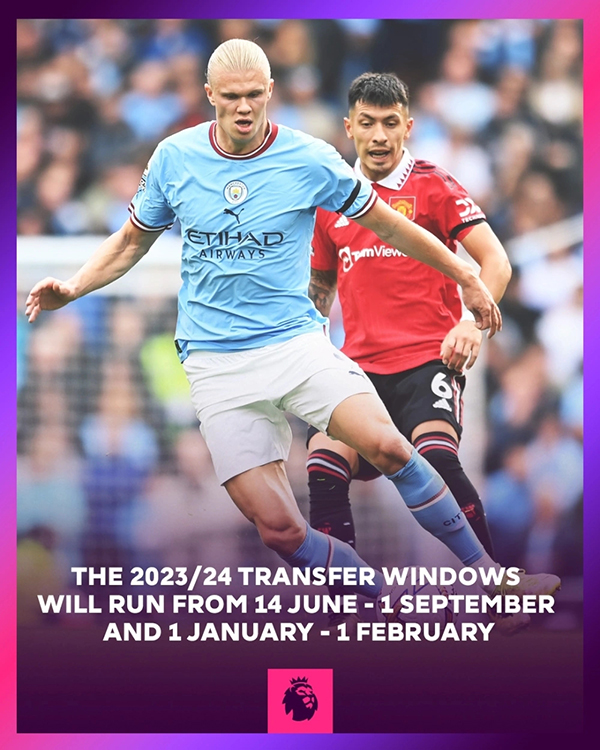 24直播网讯05月25日,英超联赛官方发布2023英超夏窗和2024英超冬窗日期。