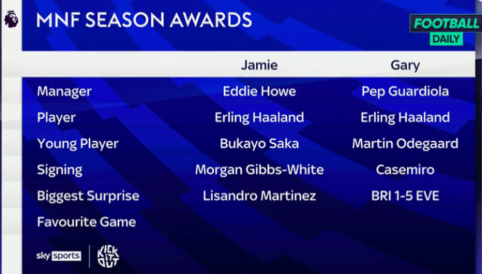 而在赛季中期,利马也作为阿根廷队的重要轮换球员,赢得了2022年卡塔尔世界杯冠军,最近他代表球队捧起了劳伦斯奖。最终,卡拉格承认,此前他对曼联铁卫的评论是个错误,并在周一向球员做出正式道歉,将他评选为本赛季的「最大惊喜」。