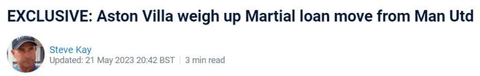 曼联大多数球迷当然支持这一方案,但维拉拥趸不干了,他们认为马夏尔在英超不算成功,自己的球队应该寻求更好的人选。当然,曼联能否出售马夏尔,或许也要看格雷泽家族是否会出售俱乐部,因为乔尔·格雷泽非常欣赏马球王,将他视为曼联的贝利,曾拒绝穆里尼奥清洗他,并且续签了现在这份25万英镑周薪合同。