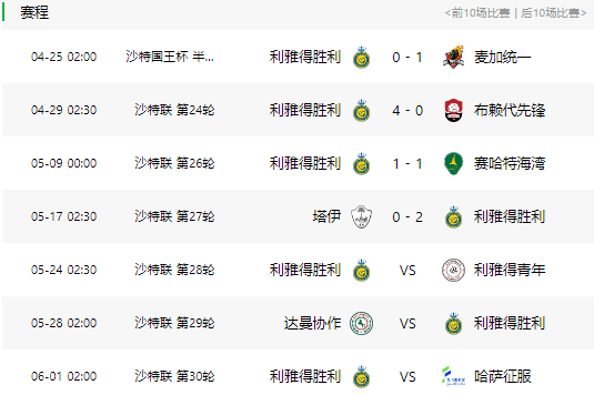 5月24日02:30 第28轮 利雅得胜利VS利雅得青年