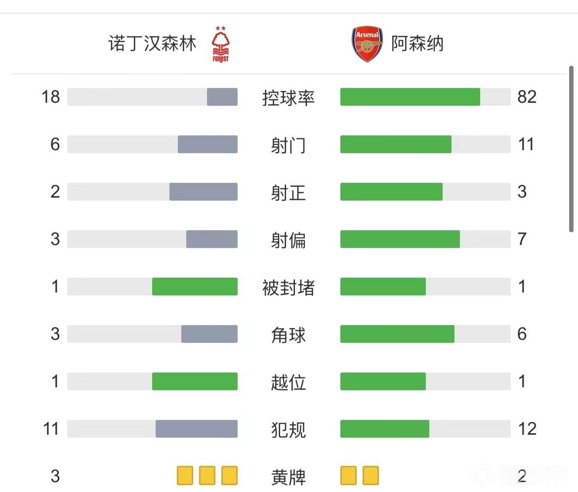 最终阿森纳0-1不敌诺丁汉森林。