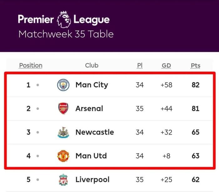 曼联仍然掌握优势,剩余4场比赛里有3个主场,但可以肯定的是,形势已经没有之前那么轻松。之前红魔根本不必在意身后,甚至一直盯着前方的纽卡斯尔联想要取而代之,但现在已经不得不有所顾虑。