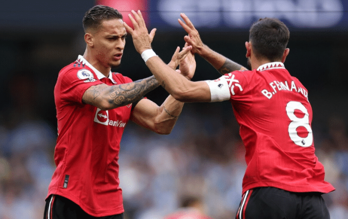 进攻火力全开,拉什福德各项赛事17场7球3助,C罗16场3球2助,马夏尔5场3球2助,桑乔14场3球1助,安东尼11场3球。这样的数据对于球队整体是有利的,但是缺乏爆点,关键比赛容易掉链子,其中被寄予厚望的22岁天才射手安东尼变成了“1亿转子”,这位今夏以大约1亿欧元转会费加盟曼联的新星效率并不高,稳定性也没达到预期,而且在比赛中出现了“转圈圈”的无效炫技,遭到吐槽,被调侃为“1亿转子”、“1亿圆规”。