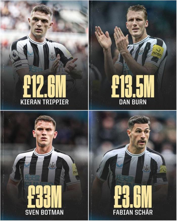 24直播网11月04日讯 消息,纽卡斯尔本赛季英超只丢10球,他们的后防线只花了6270万英镑,不到一个马奎尔的转会费。