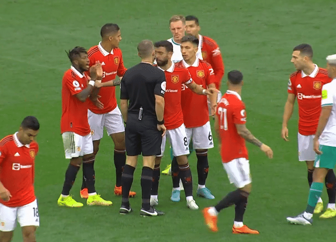 比赛第29分钟威尔逊和利马发生小冲突,上半场的比赛来到第39分钟的时候,曼联才打破了0射正,,B费精准长传发动反击,桑乔传中,安东尼的一脚射门被扑出,上半场的比赛弗雷德的表现堪称是灾难级别的,半场评分仅2分,评语为糟糕透顶,不得不说的是弗雷德心态完全崩了。曼联跟队记者Samuel Luckhurst更新社交媒体表示:你很难看到弗雷德有比今天更糟糕的37分钟的表现了,大家对于看到弗雷德以及看到肖恩-朗斯塔夫在场上欺负他感到愤怒。