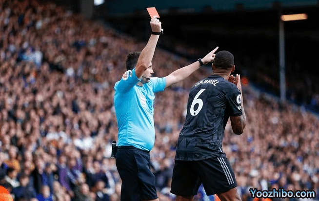 这场比赛最后时刻一波三折,补时6分钟,第93分钟阿森纳的加布里埃尔和班福德碰撞倒地后,有一个亮鞋钉的报复性动作,裁判第一时间给了加布里埃尔直接红牌,同时判罚给了利兹联一个点球,阿森纳的球员们以队长扎卡为首疯狂示意这不是一个点球,而且加布里埃尔没有报复性的行为。