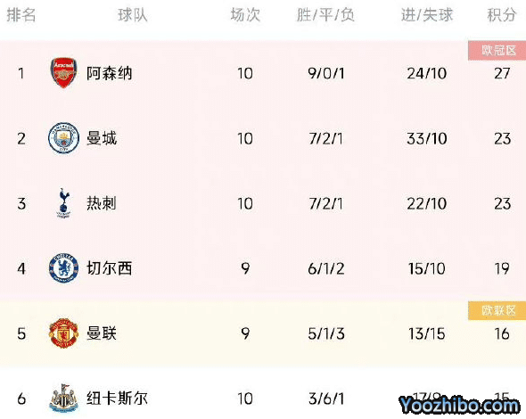 曼城在和利物浦的对决中0-1输球,吃到赛季首败,这样曼城的战绩为7胜2平1负,积23分处于第二名,被热刺追平。而阿森纳目前9胜1负,以27分甩开了曼城和热刺4分的差距,在10轮之后建立领先优势和自信心,这对于阿森纳冲击冠军是非常重要的。
