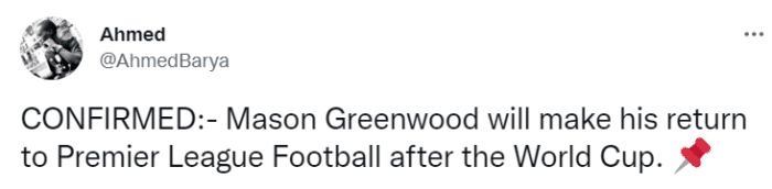 但一部分曼联球迷不断呼吁要让格林伍德回到赛场,他们总是找到各种「证据」,想要告诉人们青木会回来。上一次,他们声称曼联官网的球员资料中还有青木,说明他即将恢复训练,这迫使俱乐部公开澄清,强调格林伍德的情况没有任何变化,他的个人资料一直都在官网存在,只是在官方应用上删除而已。