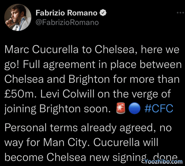 此前,库库雷利亚曾是英超另外一支豪门曼城的重点引援目标,在卖掉津琴科之后,曼城一直渴望引进一位优秀的左后卫。但曼城一直都拒绝满足布莱顿5000万英镑的报价,最终切尔西后来居上、以高价截胡成功。