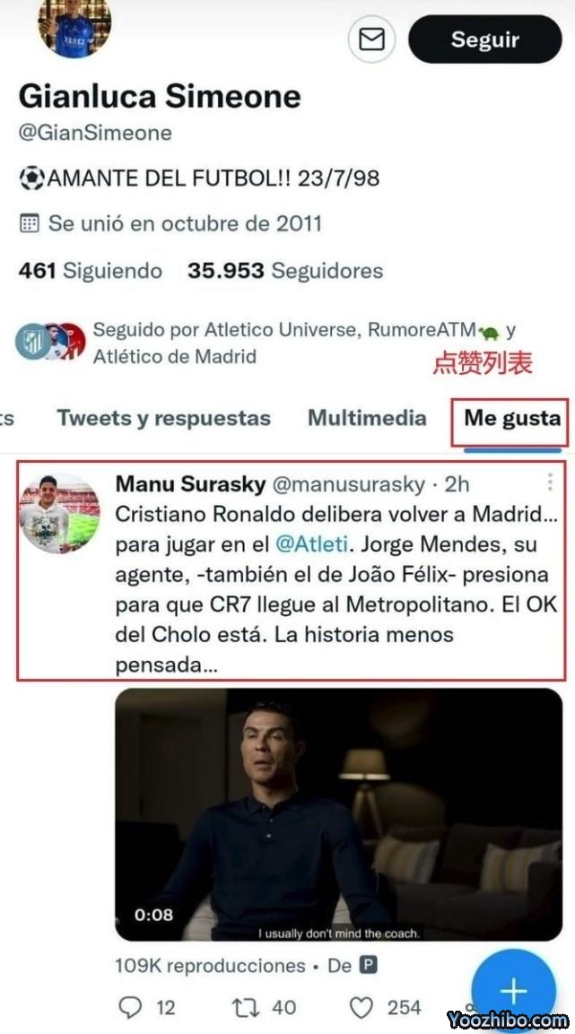 西蒙尼是否真的欢迎C罗目前无法得知,但他的二儿子——詹卢卡-西蒙尼却似乎十分期待C罗的加盟。詹卢卡公开点赞了一篇“西蒙尼同意C罗加盟马竞”的相关报道,以这种方式欢迎罗总裁加盟床单军团。