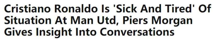 皮尔斯·摩根(Piers Morgan)称,曼联队友的种种言行举止,让C罗的挫败感与日俱增,不断沸腾,最终忍无可忍决定离队。