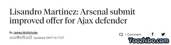 阿森纳此前报价3000万欧,被阿贾克斯拒绝后,他们把报价提高到了4000万欧。马丁内斯今年24岁,来自阿根廷。