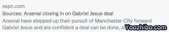 热苏斯目前的合同将在2023年到期,他愿意在今夏转会加盟枪手,上赛季他各项赛事出场41次,贡献13球12助。