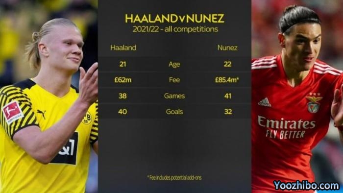 24直播网06月13日讯 消息,天空体育对比了哈兰德和达尔文-努涅斯这两笔英超夏季重量级签约。