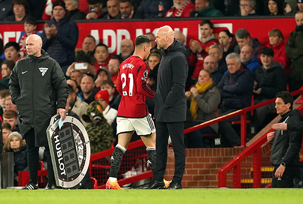来源:24直播网04-25 16:3024直播网讯 在曼联与英超副班长谢菲联的比赛中,因为拉什福德伤缺,1亿欧元边锋安东尼难得重回首发阵容。然而,这位24岁巴西国脚再次令人失望,表现全队最差,滕哈格下半场开始没多久就将他换下。在安东尼离场时,老特拉福德主场球迷发出了喝彩声,这说明了一切。