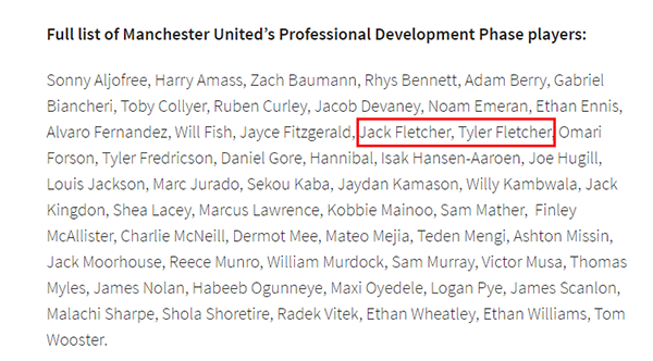 而一份最近公布的曼联「职业发展阶段球员名单」(Professional Development Phase players)中,弗莱彻兄弟的名字赫然在列,相当于官宣了他们的加盟。