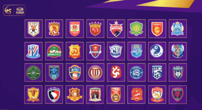 29日的抽签仪式确定四个赛区的参赛球队和首轮对阵,中超16队对阵中甲、中乙和中冠参赛队。进入正赛的9支中甲球队是成都蓉城、武汉三镇、浙江、淄博蹴鞠、陕西长安竞技、昆山、四川九牛、北京北体大和南通支云,6支中乙球队是U20国青、陕西俑士超越、西安骏狼、四川民足、丹东腾跃、青岛青春岛。